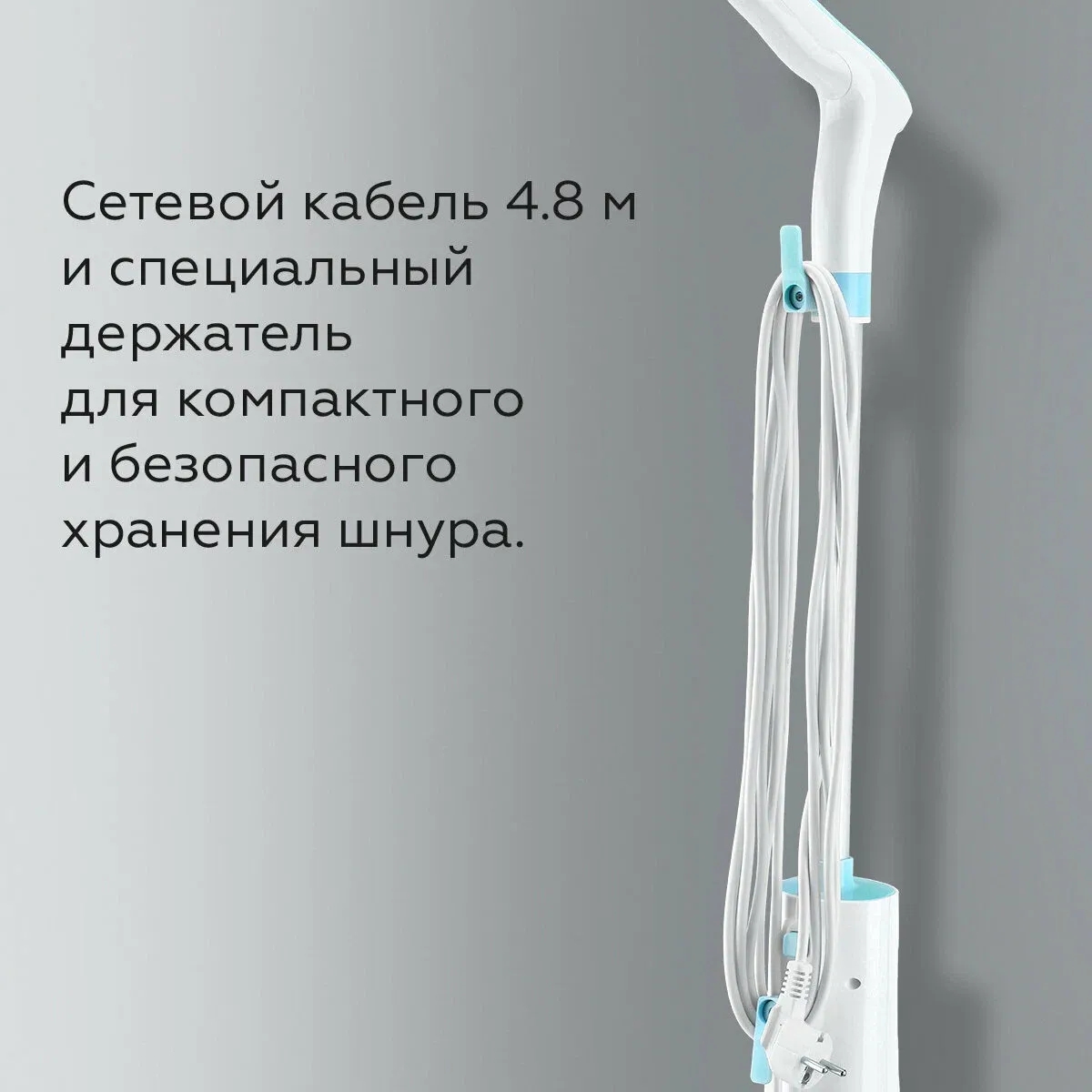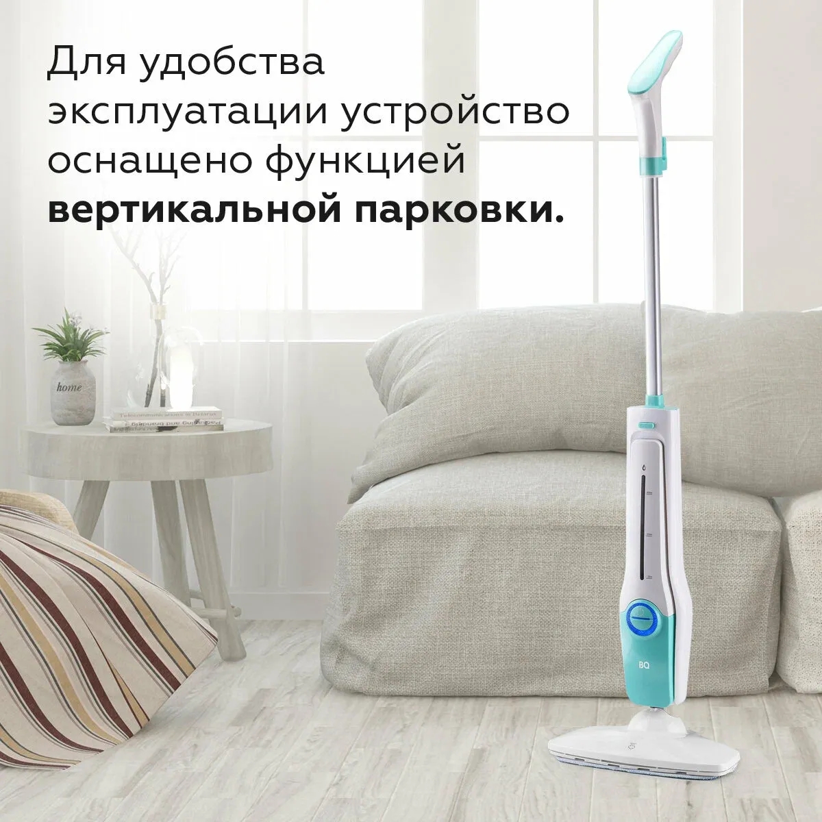 Паровая швабра BQ SM1001 мощностью 1500 Вт обеспечивает быструю и эффективную очистку напольных (паркет, линолеум, плитка) и ковровых покрытий, уничтожая до 99,9 % бактерий и микробов. Устройство нагревается за 35 секунд, создаёт давление пара 1,5 бар и обеспечивает непрерывную подачу пара до 20 минут с потоком 25 г/мин. Объём бака для воды составляет 0,45 л, имеется один режим подачи пара и поворотная щётка. Швабра выполнена из пластика, оснащена сетевым шнуром длиной 4,8 м с ручной намоткой.