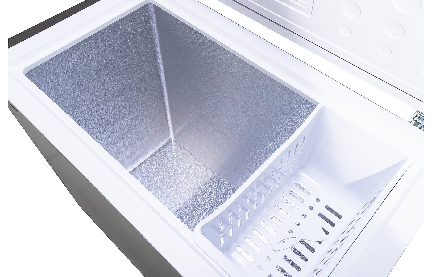 Объём в 200 литров позволяет комфортно размещать даже крупные куски мяса или рыбы без предварительной нарезки. Внутри предусмотрена лёгкая пластиковая корзина, помогающая рационально организовать пространство — при необходимости её можно убрать, освободив место.