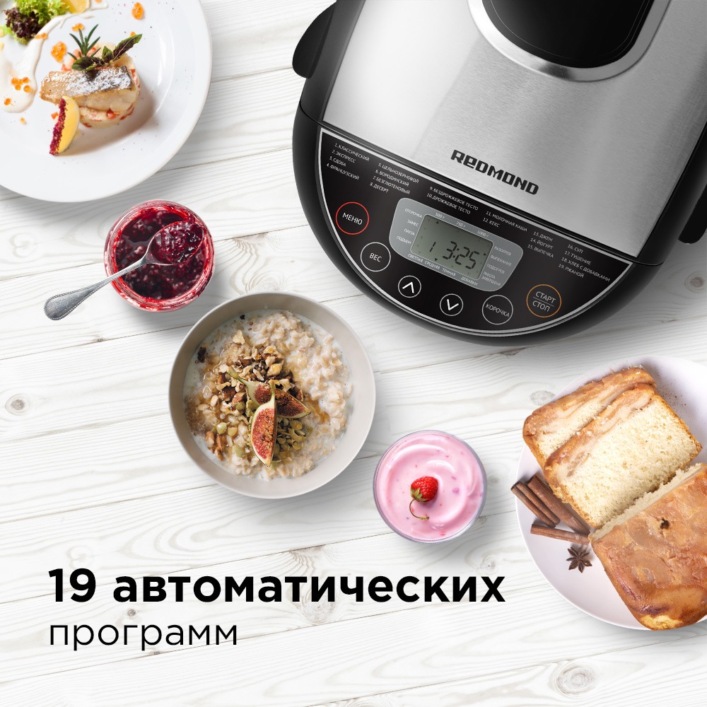 Хлебопечь REDMOND RBM-M1911 (серебристо-чёрная) — это незаменимый помощник на кухне, который позволит вам каждый день радовать себя и близких свежим и ароматным хлебом. С этой хлебопечью вы сможете забыть о покупке хлеба в магазинах и начать выпекать его самостоятельно, выбирая из 19 программ — от классического и французского хлеба до безглютенового и бородинского, а также готовить сдобу, кексы, йогурты, каши, тушёные блюда и даже джемы!