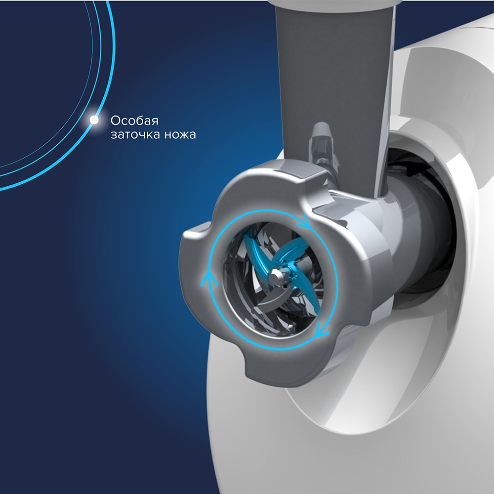 Высокое размещение шнековой камеры позволяет использовать глубокую посуду для сбора фарша — больше не нужно переживать, что он разбрызгается. Устойчивые нескользящие ножки из эластомера надёжно фиксируют мясорубку на поверхности стола, что делает процесс приготовления максимально комфортным и безопасным.