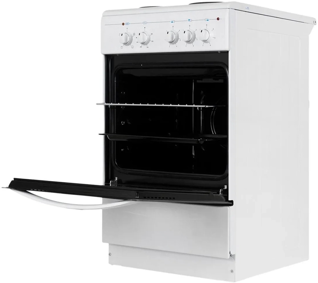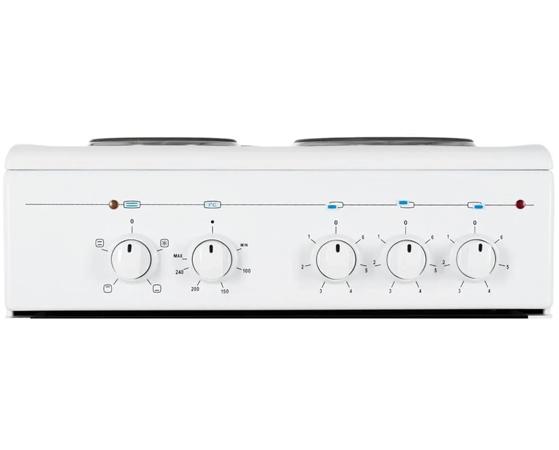 Эта модель оборудована тремя разными по размеру электрическими конфорками, позволяющими готовить различные виды блюд одновременно. Электрическая духовка плиты имеет полезный объем 55 литров.