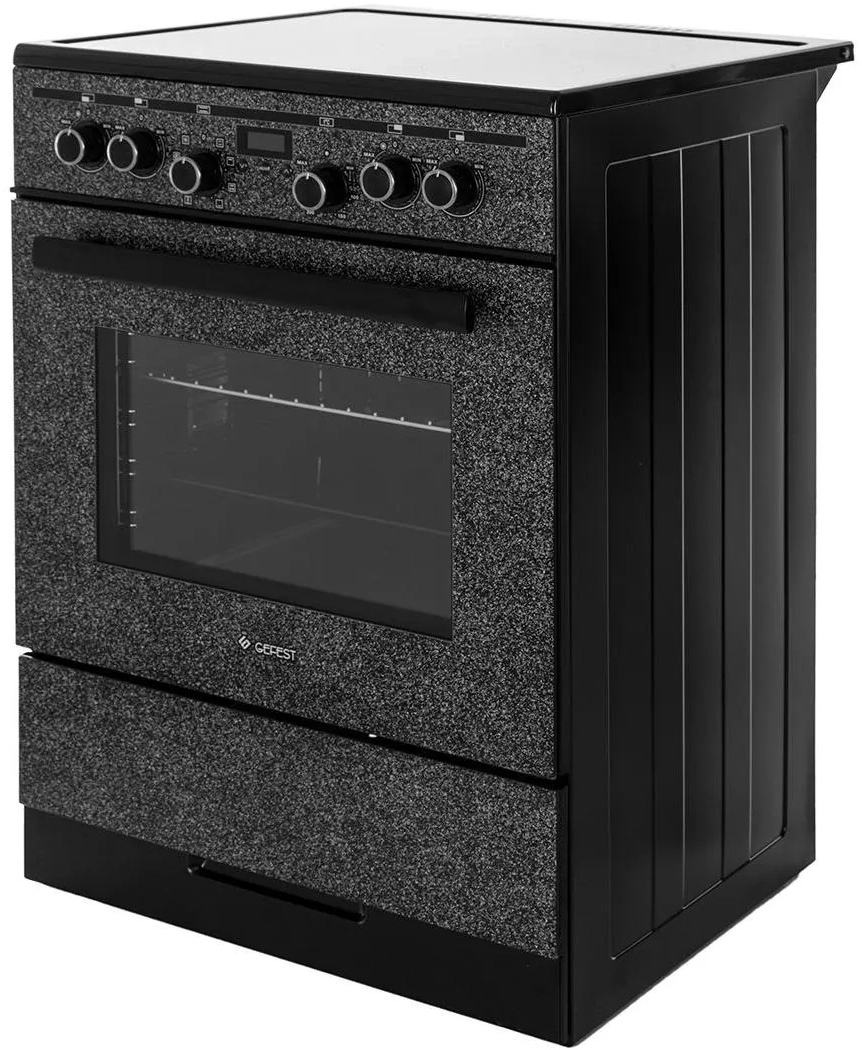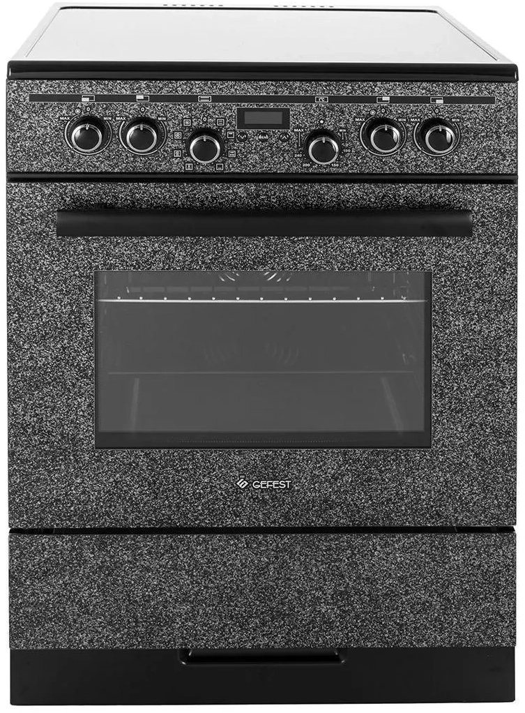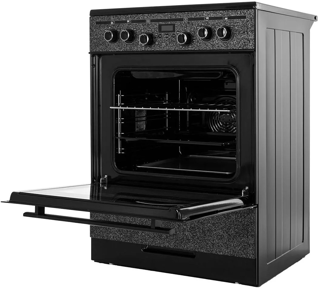 Духовой шкаф плиты имеет объем 55 литра и оснащен функциями гриля и конвекции. Благодаря этому, вы сможете приготовить разнообразные блюда, а функция гриля позволит получить аппетитную корочку на мясе или рыбе.